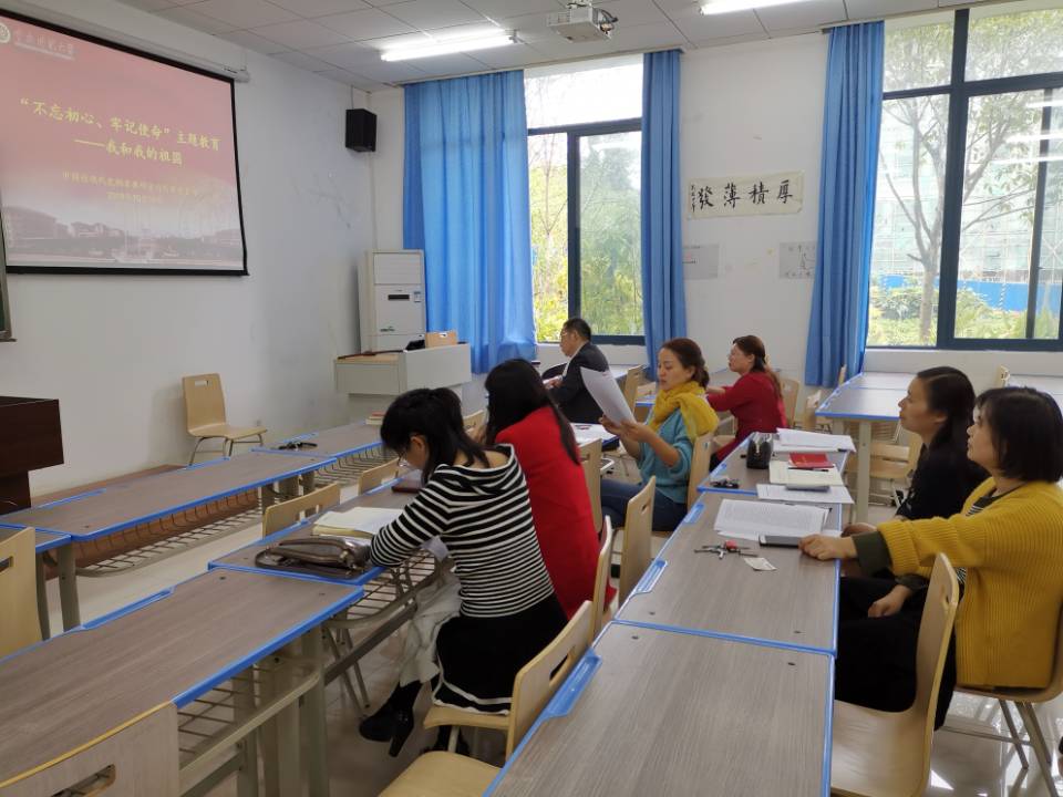 党委安排,10月17日中午,纲要与行政党支部在汇贤楼X106教室召开了“不忘初心、牢记使命”主题教育之“我和我的祖国”主题党日活动。支部全体党员参加会议,会议由支委高德华同志主持。