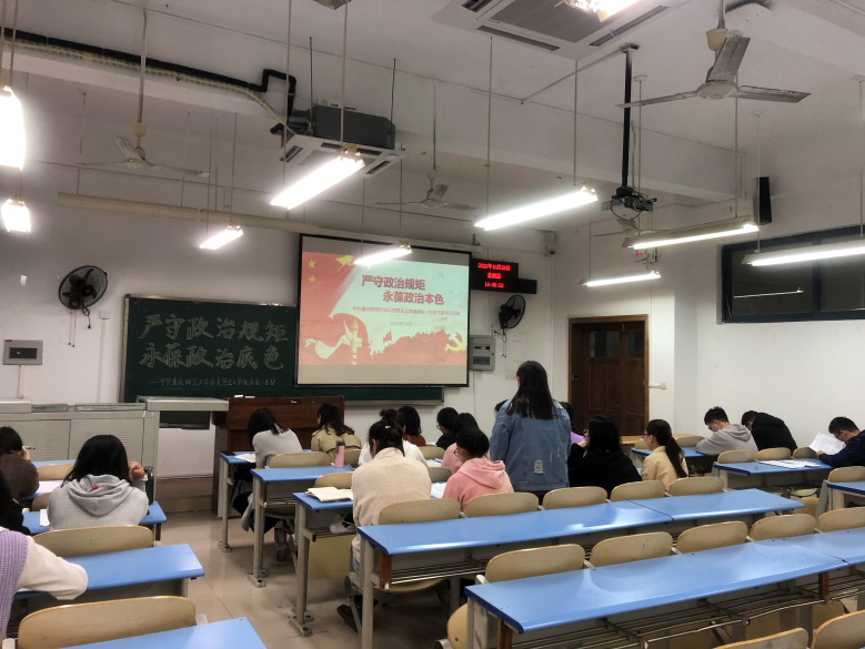 学生一支部于10月29日下午14点30分,在弘德楼15102开展了“严守政治规矩,永葆政治本色”主题党日活动,学习习近平总书记在十九届中央政治局第六次集体学习时的重要讲话及《习近平谈治国理政》第三卷部分内容。