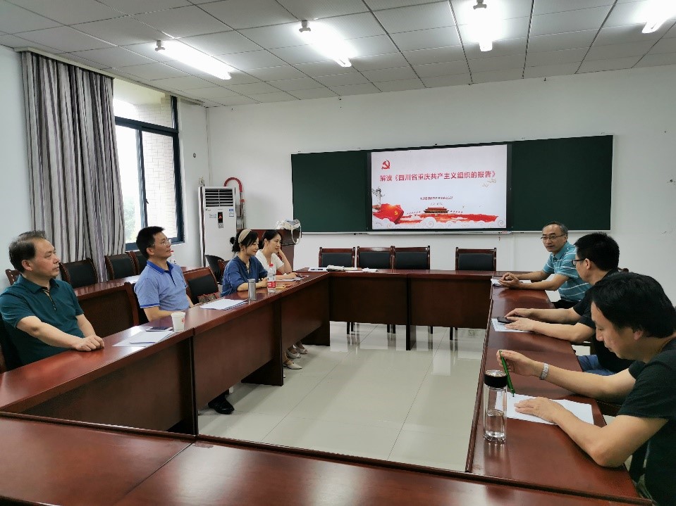 309会议室召开了6月组织生活会暨庆祝建党100周年主题党日活动。会议主题为“建党初心 入党初心——心心相印”,内容包括两部分:一是为6月入党的刘军老师、阮李全老师、杨露老师集体过政治生日;二是由支部书记杨桦老师上党课,题为《由<四川省重庆共产主义组织的报告>所想到的》。