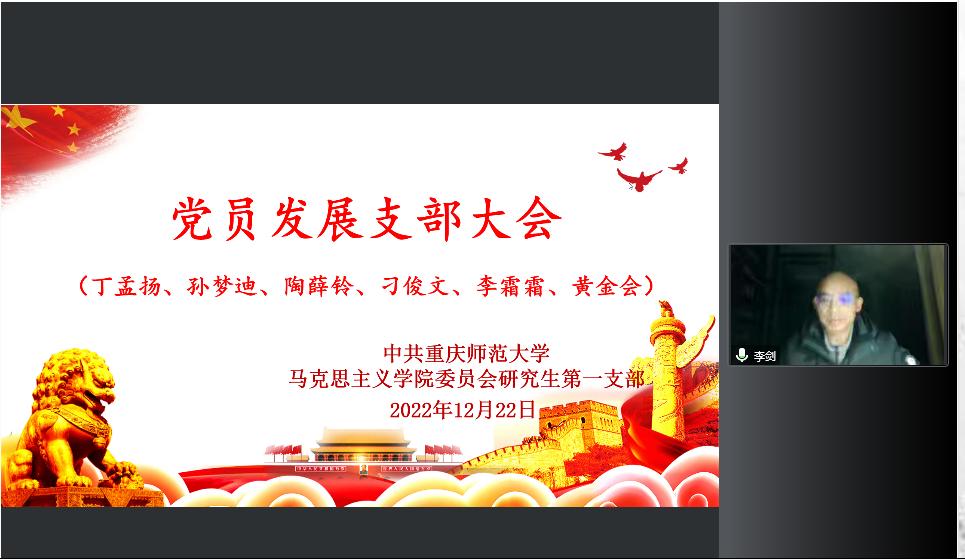 研究生第一支部采用线上与线下结合的方式,通过腾讯会议平台开展云端“党员发展支部大会”接收预备党员,会议由支部书记李剑同志主持。