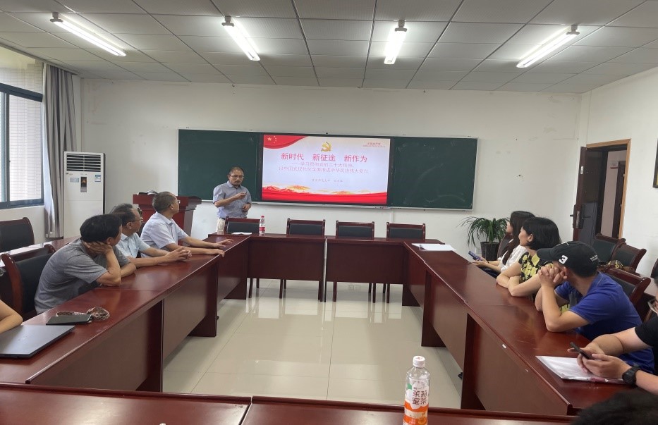 309会议室,以《新时代 新征途 新作为:学习贯彻党的二十大精神,以中国式现代化全面推进中华民族伟大复兴》为题讲授主题教育专题党课。原理支部全体同志参加了党课学习,支部书记李长泰主持专题党课。