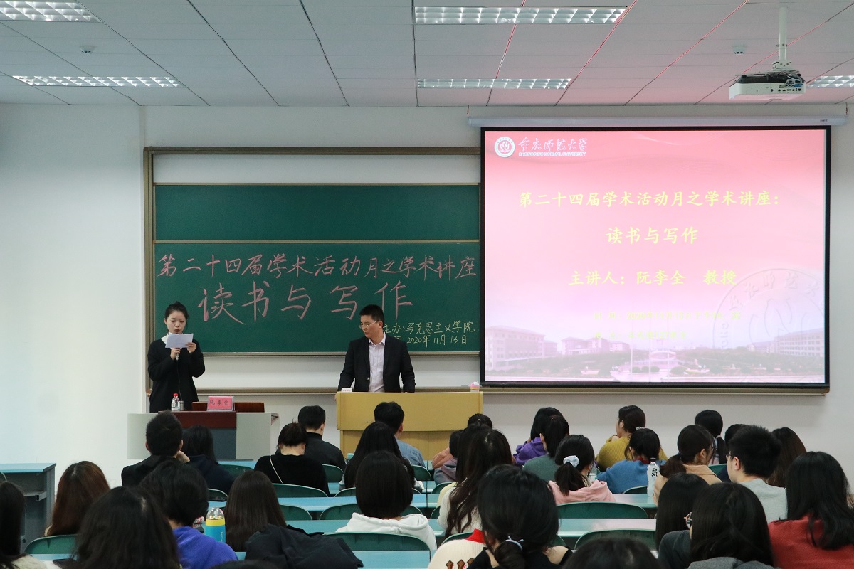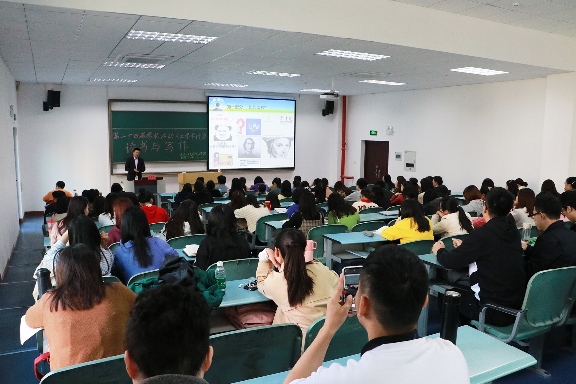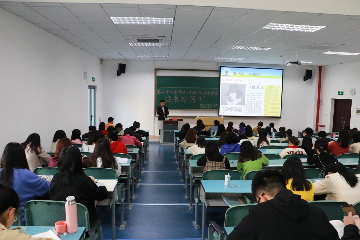 阮李全教授应邀在求是楼127教室为研究生作“读书与写作”专题讲座。2019级学术班研究生及2020级全体研究生参加,活动由研究生孙梦迪主持。