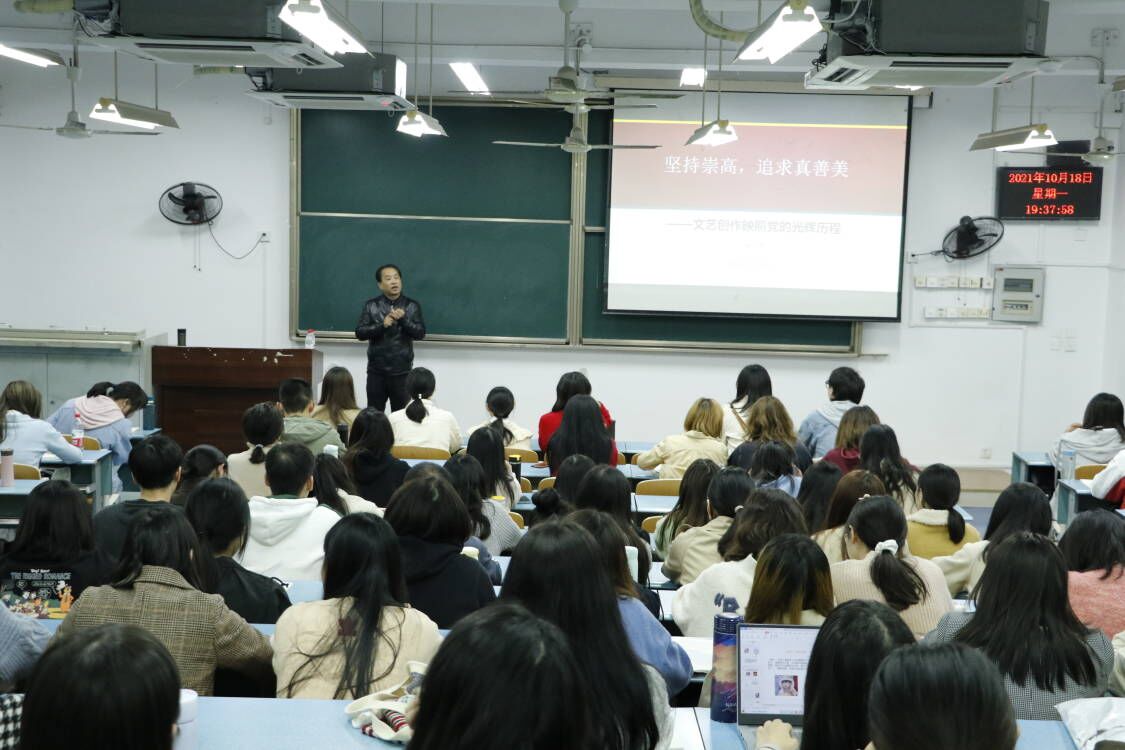 在弘德楼15404举办了第25届研究生学术活动月之“坚持崇高,追求真善美——文艺创作映照党的光辉历程”主题讲座,讲座由重庆师范大学党委宣传部副部长、中国戏剧家协会会员徐赤老师主讲,2020级、2021级全体研究生参加。