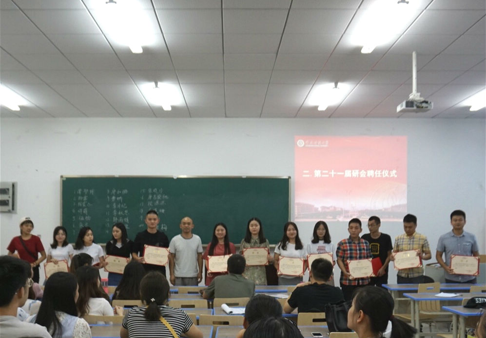 随后举行了第二十一届研究生会聘任仪式,由班主任李剑老师为上届研究生会成员颁发证书并讲话,对研究生会在过去一年来的工作和取得的成绩给予充分肯定,鼓励在场的研究生同学抓住机遇积极参与研究生会竞选,展现自我风采。他还希望研究生会能够继续保持积极稳健的工作作风,取得更加优异的成绩。