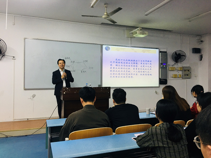 曾书记以“共产党人的思想旗帜,伟大事业的根本方针——习近平新时代中国特色社会主义思想总揽与精髓”为题,分别从习近平新时代中国特色社会主义思想产生的时代背景、丰富内涵、重大意义、新时代带来的新变化、在新的时代条件下坚持和发展什么样的中国特色社会主义、怎样坚持和发展中国特色社会主义的时代课题;习近平新时代中国特色社会主义思想的核心要义、“八个明确”的丰富内涵、鲜明理论特色和十四条基本方略的实践要求;习近平新时代中国特色社会主义思想的历史地位、重大历史贡献;以及做习近平新时代中国特色社会主义思想的传播者实践者等四个方面为同学们进行了详细深入讲解。