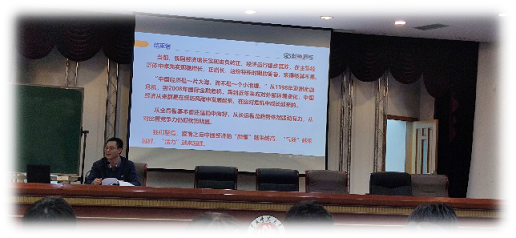 董景荣教授以“全面辨证长远看待我国经济发展”为主题向同学们讲授了本专题的课程内容。首先,董景荣教授通过数据与事实向同学们讲授了中国作为经济大国的崛起,他通过直观的PPT图片使同学们清楚地了解了中国经济总量和经济发展水平;随后,董景荣教授又给同学们讲授了中国人均GIN在世界银行分组地位的变化以及中国人均GIN的国际比较;最后,童教授通过进出口、GDP和主要生产部门等方面的讲解让同学们对于中国经济发展水平和国际地位有了进一步的了解。在此基础上,董景荣教授还以“看冲击,形有波动 势仍向好”、“开药方,精准施策 “六保”护盘”、“观长远,化危为机 韧性依旧”三个方面引导同学们正确、辩证、长远看待当前我国经济面临的形势和未来发展的方向。