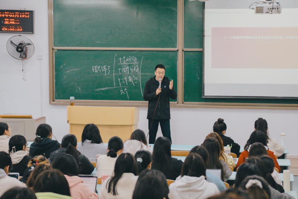 选取了7名在全国、全市比赛中获奖的教师,组织开展面向全校思政课教师的2023-2024学年第二学期思政课“教学示范周”教学展示活动。第二届全国高校思想政治理论课教学展示暨优秀课程观摩活动特等奖获得者兰桂萍教授、二等奖获得者邵二辉副教授,第三届全国高校思想政治理论课教学展示暨优秀课程观摩活动一等奖获得者李洪淑副教授,重庆市2023年高校思想政治理论课教师教学技能竞赛决赛(本科院校组)特等奖获得者仲娜老师、陈波老师,重庆市2023年高校思想政治理论课教师教学技能竞赛决赛(本科院校组)一等奖获得者蒋明伟副教授,重庆市2023年高校思想政治理论课教师教学技能竞赛决赛(本科院校组)二等奖获得者李虹辉老师分别开展了《习近平新时代中国特色社会主义思想概论》《毛泽东思想与中国特色社会主义理论体系概论》《马克思主义基本原理》《中国近现代史纲要》《形势与政策》等课程的教学展示,给全校思政课教师呈现了一堂堂精彩的教学示范课。