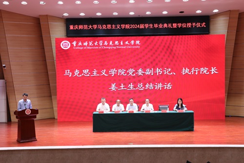 典礼第七项议程,姜土生发表讲话。受孟东方院长委托,姜土生向即将踏上人生新征程的毕业生们表达美好祝愿。同时,他寄语广大毕业生:一要强信仰、勇担当,在马信马、在马言马;二要尊重生命、保持健康、品味情感、珍惜幸福、保持身心健康;三要勤于学习、善于思考,不断追求知识、不断提升自我;四要严于自律、懂得感恩,坚守平等善良的精神品质、以包容的态度攻克艰难时刻。