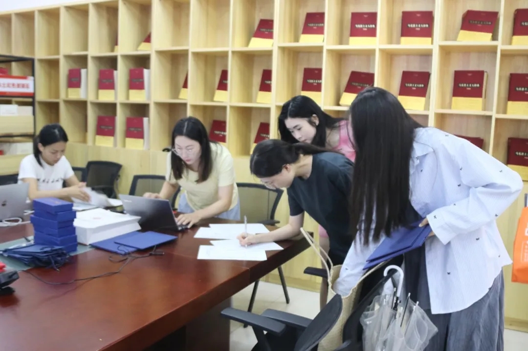 于汇贤楼106会议室开展毕业生派遣工作。学院党委副书记方敏、分团委书记兼学工办主任刘洪、2021级本科生辅导员桑子豪指导并参与现场工作,我院志愿者有序组织开展工作。