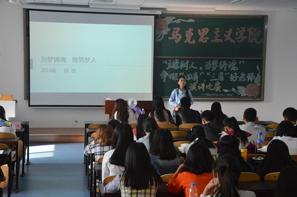 16时30 分,活动正式开始,选手们按照抽签顺序依次上台进行演讲,各选手围绕演讲主题各抒己见,激情饱满,侃侃而谈。其中,四号选手郑怡的演讲“为梦铸魂,做筑梦人”以最近的热门话题拾荒老人韦思浩的故事为开头,深刻阐述了一名合格筑梦人博大的胸襟与情怀,她铿锵有力的声调,声情并茂地讲述了筑梦这个伟大而艰辛的过程,并倡导学子争做优生,立德树人;五号选手崔倩倩就如何成为一名合格的人民教师发表了独到的见解:一是记住学生的名字,二是主动问候学生,三是终身学习。