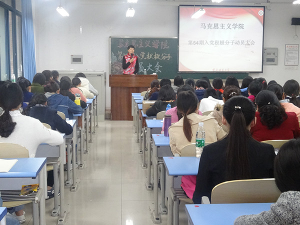 团总支书记马小又老师担任主讲人,第54期入党积极分子出席本次大会。
