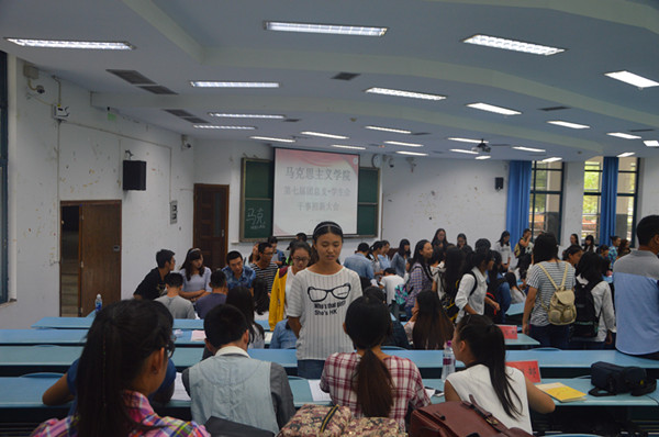 第七届团总支·学生会干事招新活动在弘德楼5105教室顺利开展,2015级新生的积极参与招新活动。
