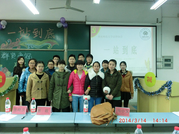 由重庆师范大学党委宣传部与法律协会联合举行的3·15消费维权活动系列之“一站到底”知识竞赛决赛于2014年3月14日中午在弘德楼5104举行,重庆师范大学党委宣传部理论科科长张敬老师、红龙扑克