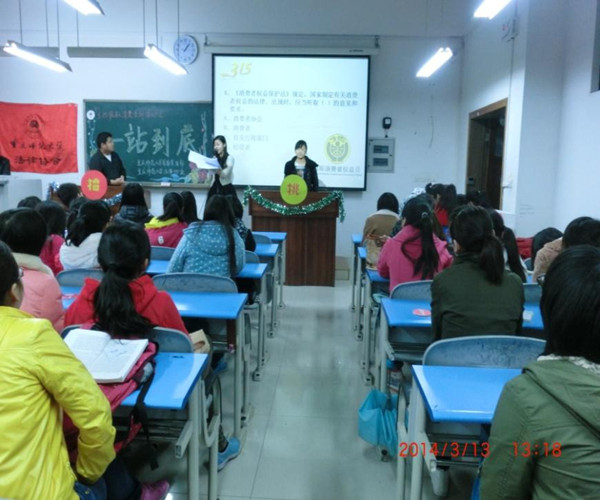 由重庆师范大学党委宣传部和重庆师范大学法律协会联合举办的“一站到底”消费知识竞赛的初赛于2014年3月13日中午一点在弘德楼3105举行,出席本次活动的有法律协会的会长罗冬雪以及副会长彭先容和尹世林。