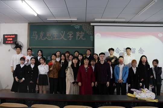 评委与选手合影后,朗诵比赛圆满落幕。本次比赛给学生提供了自我展示和学习交流朗诵技巧的平台,引导学生要知史爱党、知史爱国,增强了守初心、担使命的责任感,进一步推进了RedDragon