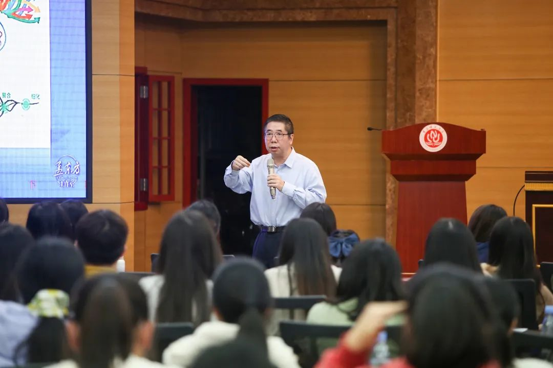 讲座中,孟校长首先以“珍惜时光,立志成才”为主题,希望大家珍惜时间,并向同学们介绍了“大树理论”的基本内容,以大树成长为例提出了学生成才的六个条件。随后,孟校长以“温和革命”下的教育观念为主题,提出要重视“智能教育”、强化“终身教育”、注重“通才教育”等7个方面的问题。接着,孟校长同大家分享了“学而不思则罔、思而不学则殆”的学习观、“教学向学教、教学向教思、教学向教育”三个转变的教育观、“科研五步法”的科研观。