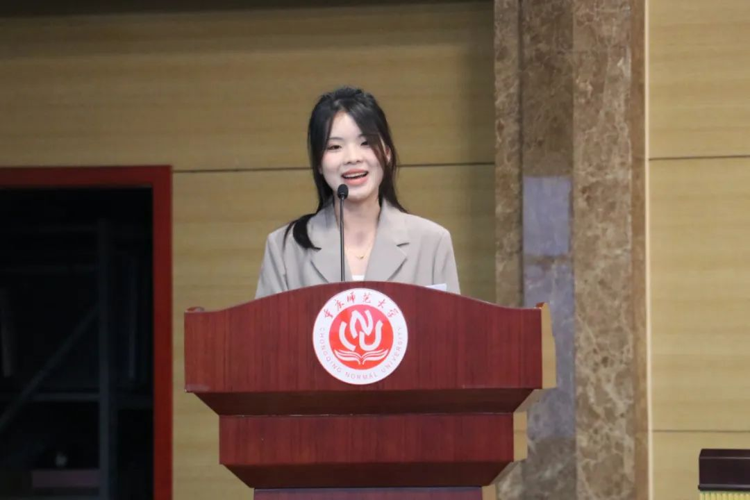 高年级学生代表黄丽娅祝愿在场同学达成所愿、结识所幸、探寻所爱,在未来的学习生活中学有所思、学有所用、学有所成。