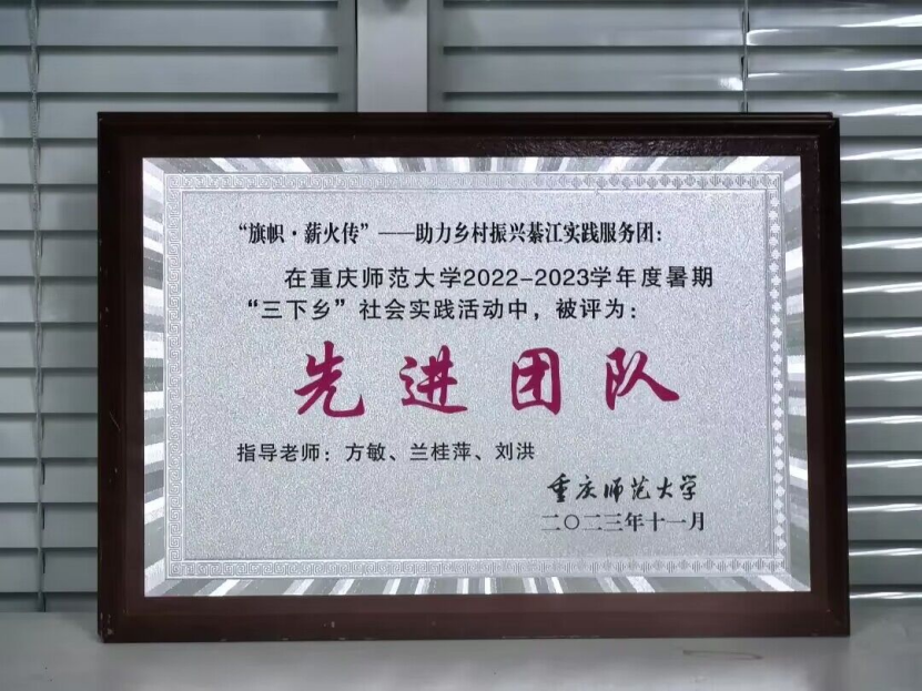 在本次暑期“三下乡”社会实践活动中,红龙扑克 “旗帜·薪火传”——助力乡村振兴綦江实践服务团、“旗帜·社区”求真学史实践团赓续红色基因,担当青年责任,荣获“先进团队”称号。