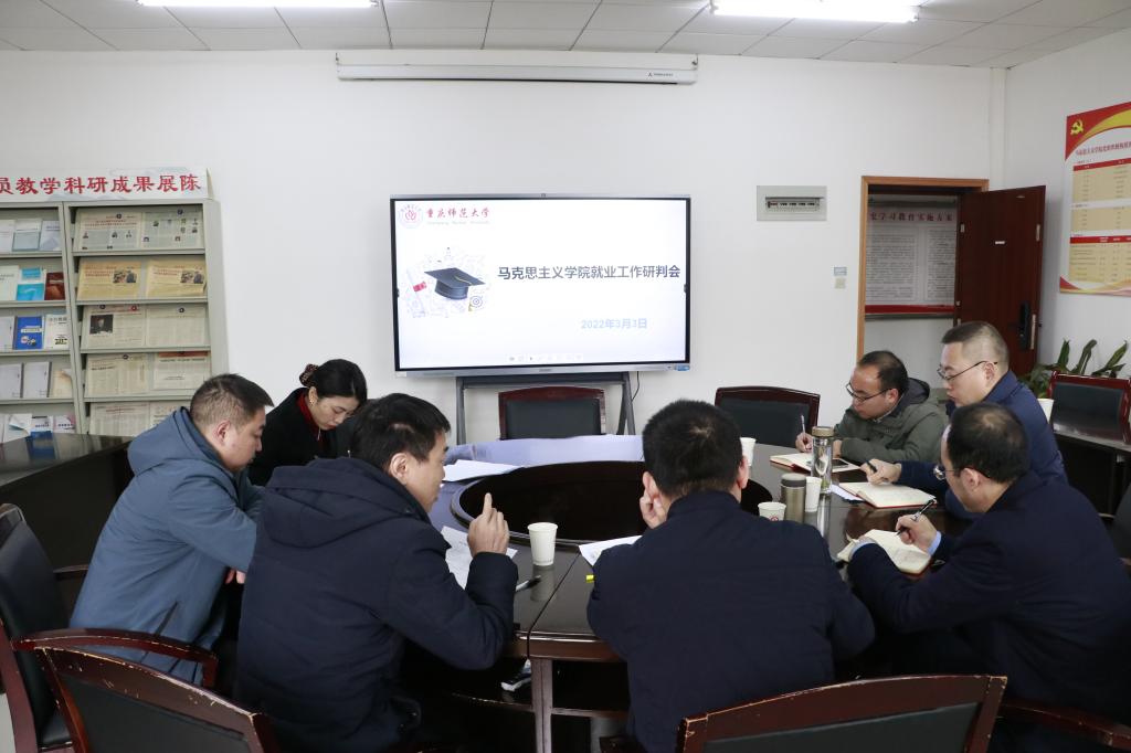 就业工作总体思路及做法做介绍,他指出要进一步深化认识、统一思想、统一行动,深入落实就业“一把手”工程,要推动全员参与,转变就业观念,开拓资源,拓宽渠道,家校联动;要抓好教学环节,推动一二课堂深度融合,加强学生师范生技能和素质培养,努力提升人才培养质量,切实提升毕业生就业竞争力;要充分学习领会好相关文件,用好就业政策,加强学生就业指导,精准施策、分类指导,精细服务,用心、用情、用力做好就业工作,确保取得实效。姜土生副院长从学科发展趋势、现状、相关对策思考三个方面进行汇报,他认为要从“一个中心、两个统筹”出发,针对目前思政专业就业呈现“稳中下行”趋势,从宏观、中观、微观三个维度加强就业工作。