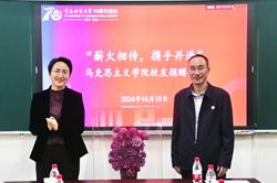 捐赠仪式上,杨燕滨校友与李晓燕书记共同走上台前,进行捐赠物品的交接。捐赠物品“花开富贵”不仅象征着校友们对马院的深情厚谊和美好祝愿,更是马院发展的助力。