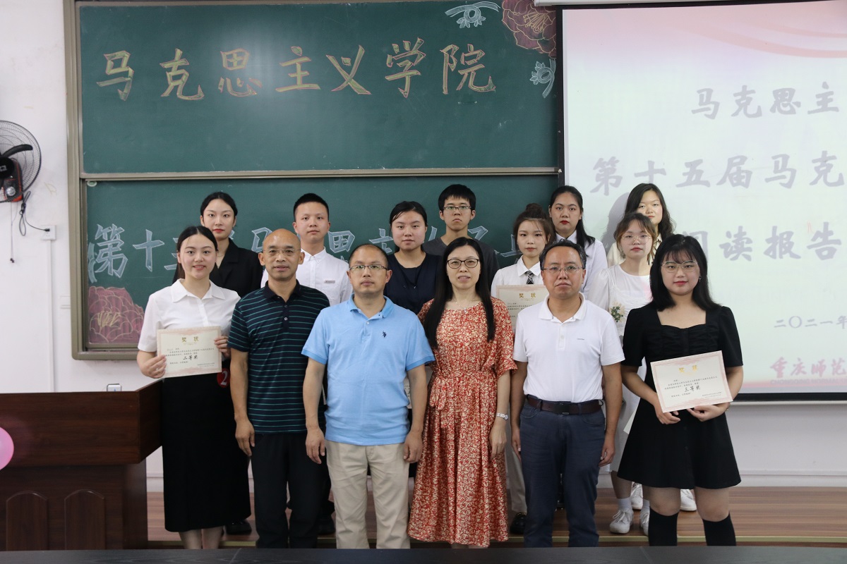 本次马克思主义经典阅读报告会比赛3号选手张雯棋、4号选手罗茂渝获得一等奖;8号选手陈芊、7号选手黄梦涵、10号选手符路、2号选手廖瑞琪获得二等奖;1号选手梁静、5号选手梁琳雅、6号选手邱诗雨、9号选手李忠毅获得三等奖。