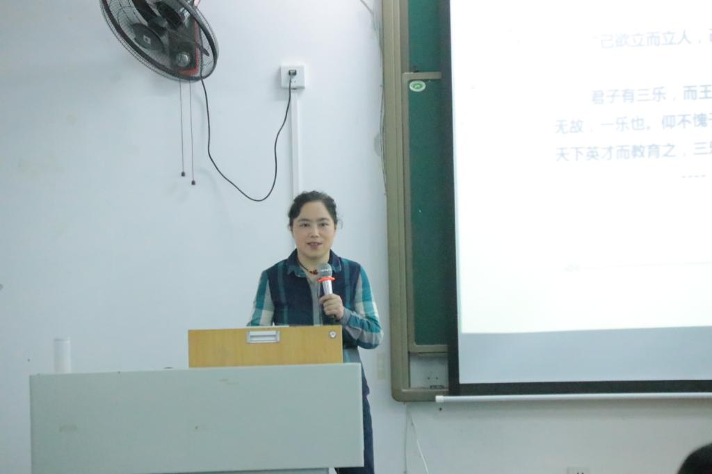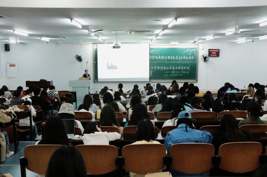 于砺志楼2213教室开展以“中学教师专业素质与培养研究”为主题的中学思政教师教育教学素质培养讲座。