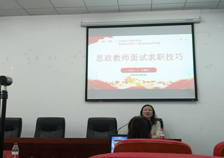 于2022年10月24日在汇贤楼106会议室举办校友讲堂暨“助力·启航”——2023届毕业生就业系列讲座之思政教师面试求职技巧讲座,讲座采取线上线下相结合的方式进行。