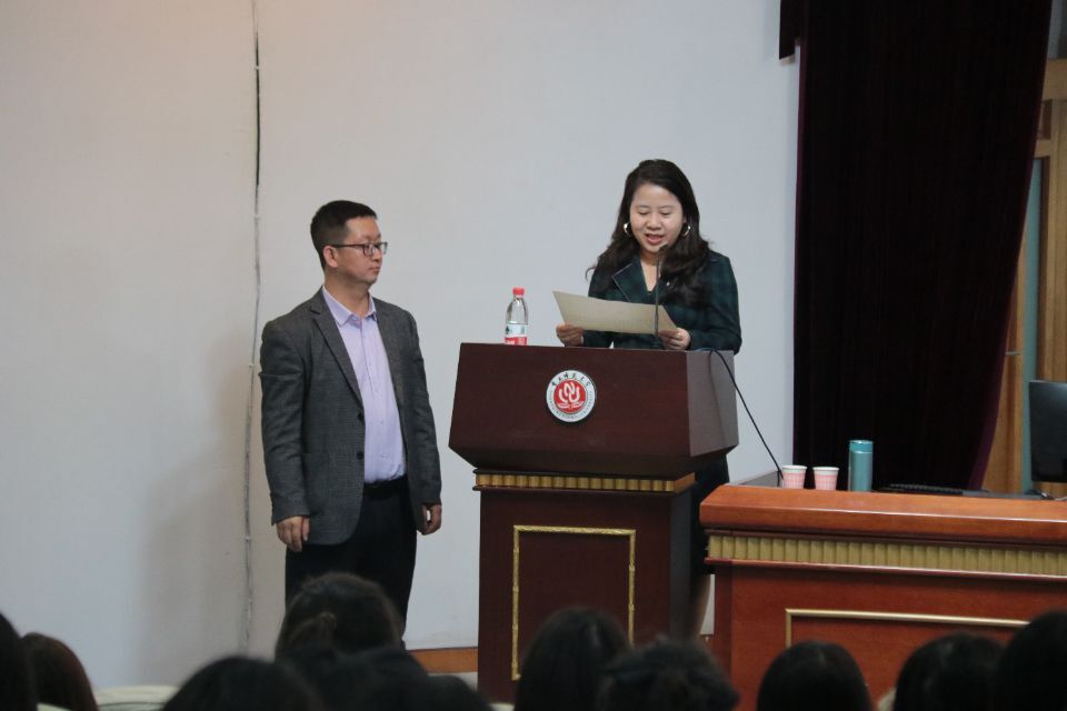 副院长侯玲主持会议并为陈海龙老师颁发聘书,2019级全体学生参与讲座。