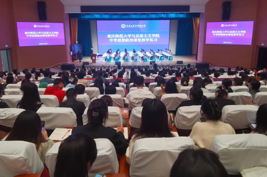 高度重视,扎实推进教育见习、实习、研习工作的开展,从大中小师范教育一体化角度出发,积极推动大学与中学两个资源合作发挥师范生协同培育功能,推进大学教师和学生进中学、大学教师教育类课程与中学教学实践相融合。见习动员大会后,政教系组织带队老师、指导老师与学生同行开展2023年秋季教育见习,2022全体本科师范生及2021全体学科思政硕士参加。2023年10月31日,首赴重庆巴蜀科学城中学开展教育见习。