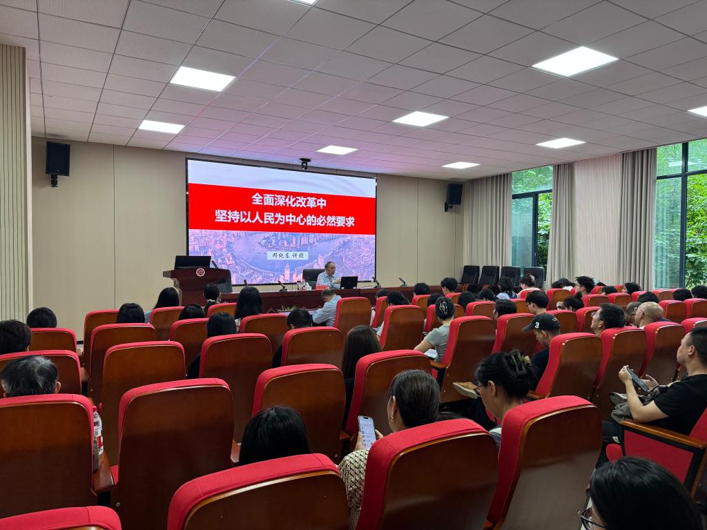 106会议室作题为《进一步全面深化改革中坚持以人民为中心的必然要求》的党员学习教育专题讲座。讲座由副院长田方林教授主持,全院教职工及学生党员代表到场聆听学习。