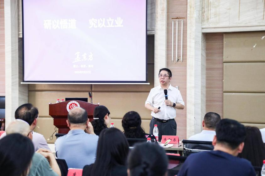 院长孟东方教授以“研以悟道、究以立业”为主题寄语师生。他深入解析研究生涵义“研”与“究”的学术本质,勉励青年学子要以纯真之心探求真理、以至善之志服务社会,在学术深耕中成就兼具专业造诣与人文情怀的优雅人生。