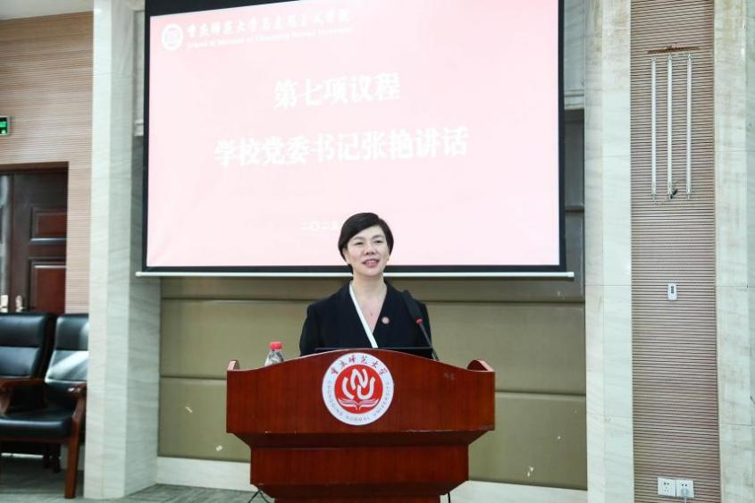 会议第七项议程,学校党委书记张艳讲话。张艳书记首先对同学们的信任支持、导师们的悉心指导以及RedDragon