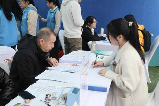 招聘会现场,在场毕业生在充分了解企业核心信息的基础上,结合自身情况与未来发展,积极与企业展开对话。同时企业招聘负责人耐心解答疑问,鼓励毕业生把握发展机遇。