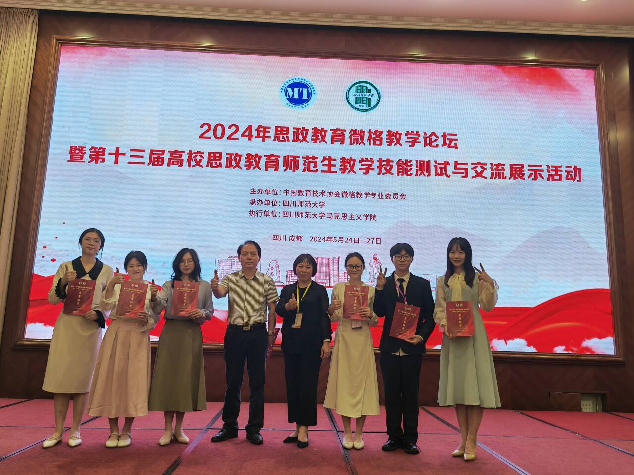 2024年5月24日—5月27日,第十三届高校思政教育师范生教学技能测试与交流展示活动(“华文”杯)在四川师范大学举行。第十三届高校思政教育师范生教学技能测试与交流展示活动是由中国教育技术协会微格教学专业委员会主办,全国师范院校参与的教学技能大赛,旨在给师范生提供展示和交流的平台,激发师范生积极投身教育教学活动的兴趣,提升师范生职业技能水平,促进教师行业发展。